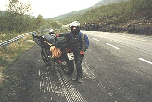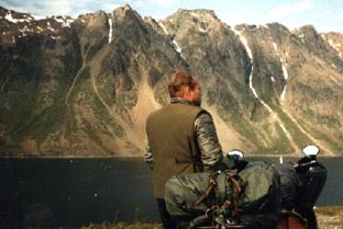 | 21.6.1987Laittelemme itsemme tien päälle aamulla hyvissä ajoin. Kilpisjärven kylä vaikuttaa tyhjältä, vaikka eipä siellä tungosaikaankaan liene muita kuin mitä rajavartioston henkilökunnasta ja kaupan väestä kertyy. Tungoskin on niin suhteellinen käsite. Ajelemme hissukseen kohti rajaa. Taitavat tullissakin vielä nukkua, kukaan ei nimittäin ole pätkääkään kiinnostunut siitä, että me tulimme juuri Norjaan ties mitkä pahanteot mielessä. Tien lakikohdan puuttomalla tasankopätkällä on koko tokka poroja. Paimenia vain ei näy missään. Mitäs jos tuokin parttio päättää nulkata rajan yli Suomeen, ja tullissa satutaan taas olemaan nukkumassa? Vai ovatko ne korvamerkit kuin rekisterikilvet ilman kansallisuustunnusta ja silti tunnistettavissa? Hetken päästä mennään jo alamäkeä kohti Atlantia. En millään malta olla selittämättä Johannalle, mitä vedenjakaja tarkoittaa; mitä tapahtuu, jos pissata lirauttaa maahan tien korkeimman kohdan itäpuolella ja mitä jos länsipuolella. Skibottn-joen rotko on todella jylhä. Joiltakin parkkipaikoilta pystyy kurkkimaan alas rotkon pohjalle. Kovin likelle reunaa ei kuitenkaan tunnu olevan syytä mennä. Tunturikoivutkin tuntuvat niin vaivaisilta, ettei niistäkään oikein saa turvalliselta tuntuvaa otetta. Tympäisee kun tietää etukäteen miten syvyysvaikutelma häipyy valokuvissa olemattomaksi. Läheisestä varuskunnasta ajaa vastaan letka Naton sotilasajoneuvoja. Saman tien tulemme taas mäntyvyöhykkeelle; ihan tukkipuita ei näy, mutta selvästi männyiksi tunnistettavia käkkyröitä. Skibottnessa tulvahtaa Norjan haju nenään. Johanna ihmettelee, mistä se tulee. Kurvaan rantaan ja menemme katsomaan telineillä kuivamassa olevaa turskaa. Johanna pitelee nenäänsä. Kerron, että kuivatusta turskasta tehdään norjalaiseen peruskouluun ruokaa laiskoille ja häijyille oppilaille. Tyttö epäilee, ettei niin häijyjä oppilaita voi olla edes Norjassa. Ja sitten alkaakin tyypillinen norjalainen vuonojen rantoja kiertelevä tie. Välillä tuntuu, että sama niemennokka kierretään kahdesti. Ja omat perävaloni olen nähnyt ainakin kolmessa kurvissa. Pidämme taukoja tuon tuosta, koska minusta tuntuu, että Johanna alkaa väsyä. Hän nojaa selkääni sen verran kovasti, että joudun ottamaan käsillä vähän stongasta vastaan, ja sormenpäät menevät tärinästä turraksi. Välillä käydään lumirajan yläpuolellakin. Luin vast'ikään toisen maailmansodan aikaisia tapahtumia Norjassa käsittelevän kirjan. Se palaa mieleeni Kåfjordissa, jonne taistelulaiva Tirpitz yritti kätkeytyä, ja jonka pohjaan liittoutuneet sen pommittivat. Meillä vapaussodan aikaisten arpien sanotaan säilyneen näihin päiviin asti. Mitenkähän mahtaa olla Norjassa? Kansa oli jyrkästi jakautunut kahtia Quislingin hengenheinolaisiin ja vastustajiin. Ei ehkä niinkään tasaisesti pääluvun mukaan, mutta sitäkin selvemmin ideologisesti. Miten ne täällä ovat saaneet arvet peittoon? Vaikeaa on varmasti ollut. Tulemme lopultakin vuonoja kierreltyämme Altaan ja kurvailemme hetken ympäri cityä. Altassa on oikeastaan kolme erillistä keskusta, joista keskimmäinen on se oikea. Poikkeamme siellä turistitoimistossa varaamassa yöpaikat Skaidin mökkikylään. Toimistossa on ylitsevuotavan ystävällinen tyttö töissä. Hän on erittäin, erittäin iloinen ja yllättynyt tavatessaan suomalaisia, jotka osaavat puhua englantia. Kehuu minunkin puhuvan lisäksi melko hyvää englantia. Sanon tulevani englannilla juuri ja juuri toimeen. Annan vielä lisänäytteen kielitaidostani ylistämällä Norjan luontoa ja koko maan, varsinkin Altan, ystävällistä väkeä. Käymme syömässä pizzat ja katselemme samalla Hurtigruttenin lähtöä satamasta. Ja sitten vain kohti Skaidia. Parikymmentä kilometriä Altasta tie nousee ylängölle, ja olemme taas lumen keskellä. Pyörteilevä tuuli pitää jossakin määrin tarkkana. Tien varressa on saamelaisperhe torkuttelemassa kotansa edustalla. Poroja vain ei tällä kertaa näy missään. Huutelen Johannalle, että pian tulee hieman kummallinen näky. Ja hetken päästä ollaan oikealla kohdalla. Keskellä ei-mitään on nimittäin kirkko. Ainoatakaan asumusta, ei edes tilapäistä, näy mailla ei halmeilla. Onko kirkko rakennettu aikana, jolloin sudulla asuttiin, vai ollaanko tänne odottamassa väenryntäystä syystä tai toisesta. Mistä tulikin mieleen: Minulle jäi kansakoulun maantietotunnilta selvä kuva Norjasta. Opettaja näytti meille värikuvaa, jossa ruohokattoisen hirsimökin katolla oli vuohi syömässä. Opettaja tiesi kertoa, että norjalaiset asuvat kuvan kaltaisissa mökeissä. Sen jälkeen asian tiesin minäkin. Mutta uskoni on alkanut kyllä hieman horjua. Olen tuon maantietotunnin jälkeen käynyt Norjassa useastikin, enkä moisia mökkejä ole montakaan nähnyt; saati sitten norjalaisia asumassa niissä. Mutta opettajani toisen väitteen norjalaisista allekirjoitan vieläkin milloin tahansa. Hän näytti kuvan Harald Grönningenistä ja sanoi, että norjalaiset näyttävät tältä. No, tosiasiassa eivät ihan kaikki, mutta on täällä kyllä pilvin pimein miehiä, jotka ovat hieman kumaraisia, pitkiä ja laihoja sekä omaavat ainakin kolme numeroa liian suuren koukkunokan. Naiset erottaa siitä, että niillä on pitempi tukka ja hame. Olen täysin tosissani. Laittakaa riviin kaksikymmentä eri kansallisuutta olevaa ihmistä; lykätkää joukkoon yksi norski, ja minä poimin sen erilleen muista täysin erehtymättä. Hyvin ovat kansakoulun opit menneet perille. Laskeudumme Skaidiin ja ajamme mökkikylään. Kuvittelen Johannan olevan kovinkin väsyneen. Mutta tämäpä kipaiseekin tarkastamaan portin pielessä olleen leikkipuiston vempaimet. Itse keplottelen puutuneen jalkani satulan yli. Eihän tämän nyt ihan näin pitänyt mennä. |