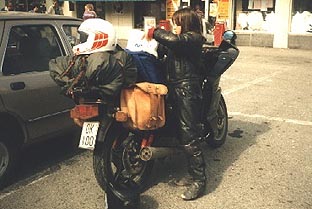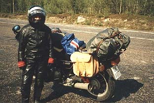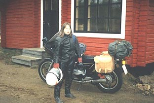 Lyön Suzukin käyntiin todisteeksi siitä, että mikään todellakaan ei ole rikki. Keskustelua ei oikein saada käyntiin, joten heilautamme kättä molemmat ja häivymme omaan suuntaamme. Johanna ostaa Inarista äidille tuliaisiksi kukkaron. Istun jollakin kaiteella, tupakoin ja odottelen, että Johanna saa kukkaron pakatuksi kuormaan. Saksalaisbussista purkautuu ulos kuorma mummoja. Muutama heistä kävelee meidän suuntaamme ja pysähtyy katselemaan Johannan puuhia. Yht'äkkiä huomaan heidän tuijottavan minua vihaisen näköisinä. Tuijotan takaisin, mutta mummotpa eivät painakaan katsettaan alas. Mietin kuumeisesti, miten sanotaan saksaksi: "Ei teidän kannata minua tuijottaa, minä nimittäin olen hullu." Kielitaito ei siihen kuitenkaan riitä. Niinpä nousen jaloilleni ja otan muutaman askeleen mummoparvea kohti valmiina sanomaan vaikka käsipäivää. No, johan lähtevät köpittelemään kahvilaa kohti. Sinne mekin. Juttusille tulee italialaispariskunta, joiden pyörä näyttää olevan BMW K100RS. Moista vekotinta en ole ennen luonnossa nähnytkään. Italialaiset kehuvat pyörän olevan todella hyvän pitemmälläkin matkalla. Uskotaan. Karhunpesäkivelläkin käydään pyörän selästä poissa. Pitempäänsä ei kuitenkaan jäädä venymään. Ivalon kirkolle olen valmis myöntämään toiseksi rumimman kirkon tavoitellun arvosanan. Rumin on kiistatta Haaparannassa. Ivalon läpi johtaa suuntaansa puoli toista kaistaa leveä väylä. Tienkäyttäjillä näyttää olevan vaikeuksia päättää, oikeuttaako se ajamaan samaan suuntaan rinnakkain. Siinäpä miettimistä kerrakseen. Muutama vuosi sitten Kaakkois-Suomessa ajellessani pysähdyin kyläkaupassa kysymässä, missä tarkkaan ottaen olin. Kauppias tiesi kertoa että Savonrannassa. Kysyin vielä millaisessa kunnossa tie oli Savonrannasta eteläänpäin. Kauppias ryhdistäytyi täyteen mittaansa ja lausui hieman närkästyneen tuntuisesti, että meillä on täällä ainoastaan hyväkuntoisia teitä. Olen aiemminkin tehnyt saman tempun ja todennut, että monet kuvaavat paikalliset sorapäällysteiset kylätiensä nelikaistaisiksi moottoriteiksi. Siihen voi olla kaksikin syytä: kysyjän arvoidaan pitävän myönteisestä vastauksesta, tai sitten vastaaja itsekin mieltää asuvansa superhighwayn varrella. Todellisuus voikin sitten kysyjän yllättää. Kysyin appiukoltani lähtiessämme kannattaako Sodankylästä oikaista Unarin kautta Meltaukseen ja siitä sitten ajella Pelloon. Appiukko kertoi, että tie on oikein hyvässä kunnossa. Tiesi varmuudella, kun oli sitä vast'ikään ajanut. Varoitteli turhaan kiertämästä Rovaniemen kautta. Kurvaamme Sodankylässä länteen kohti Kittilää. Unarin tienhaaran jälkeen tie muuttuu pyykkilaudaksi. Olisikin kuoppia siellä täällä, niin nehän kiertäisi, mutta tien poikki meneviä uria ei väistä millään. Vauhtiakaan ei pysty nostamaan niin paljon, että pyörä kulkisi urien päällä. Hetken päästä toisesta peilistä putoaa lasi. Ja jotta kurjuus olisi täydellinen muutaman kilometrin päästä toinen. Maanpäällisen taivaan saavutamme Meltauksessa kun saamme allemme päällystetyn tien. Viimeinen paussi Raanujärvellä. Jonkin verran väsyneinä kurvaamme mummilan pihaan. Kaikki ovat huolissaan siitä, miten Johanna on reissun jaksanut. Sanon, että ihan hyvin, vaikka onkin koko matkan ajanut. Mutta illallakaan en pääse eroon siitä ajatuksesta, millaiset arvet tästä hullutuksesta tyttären sieluun vielä jää. Aika näyttää. |