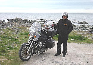 23.7.2001 Sadepilvet ovat häipyneet, ja sää on jotakuinkin kirkas. Olli väittää minun kuorsanneen. Kysyn, kukahan tässä on vannesahan vinkumista yön kuunnellut. Menen parvekkeelle tupakalle ennen aamiaista. Polttelen ja nippaan sitten tumpin alas. Ja silloin sattuu vahinko! Samassa Olli tulee parvekkeelle ja kysyy, mitä kurkistelen. Sanon heittäneeni tupakantumpin maahan. Olli syyttää minun sotkevan koko Norjan ja huomauttaa vielä hyveellisen motoristin periaatteiden unohtamisesta. Sanon meneväni alas polkemaan tumpin sammuksiin. Kun tulen takaisin, Olli naureskelee aamiaishuoneen ovella. Sanoo arvaavansa tarkoin, mitä tapahtui. Väittää minun heittäneen tumpin alas ja sen osuneen upouudelle Corbin-satulalle. On vielä kovin varma siitä, etten minä olisi missään tapauksessa lähtenyt pelkästään polkemaan jo luultavasti sammunutta tumppia, ellen olisi säikähtänyt sen aiheuttaneen jotain varsinaista vahinkoa. Arvauksen tarkka oikeaan osuminen saa minut äimistymään. En viitsi alkaa väittää vastaan. Asia unohtuu nopeammin, kun siitä ei puhuta. Ihmettelen kuitenkin ääneen, mitä on tapahtunut vanhoille hyville, kunnon motoristien vaalimille, toistensa yksityisyyden kunnioittamisen periaatteille. Menemme syömään. Kysyn kuitenkin vielä Ollilta, että kun tuota arvauskykyä tuntuu löytyvän noin kosolti, voisiko hän täyttää puolestani ensi viikon lottokupongin. Olli on sitä mieltä, että hänelle vuodatettujen tietojen mukaan valtion virkamiehille maksetaan sen verran palkkaa, että sillä kyllä tulee toimeen ilman lottoamistakin. Aamiaishuoneessa hääräilee vanhemmanpuoleinen naisihminen, joka meidät nähtyään puhkeaa innokkaaseen norjankieliseen lopotukseen. Taitaa olla itse Leila-emäntä, jonka mukaan hotelli on nimetty. Sanomme, ettemme ymmärrä norjaa. Jospa se sillä tokenisi. Mutta eikö mitä, Leila vaihtaa puheensa sujuvaksi englanniksi. Kyselee ummet ja lammet sekä kertoo siinä ohessa Varangin niemimaan asioista. Onnistumme kuitenkin seurustelun lomassa hieman syömäänkin. Keräämme kamppeemme, maksamme ja alamme pakata pyöriä ajokuntoon. Pihaan kurvaa autolastillinen äänekkäitä suomalaisia. Kun kerran olemme tulossa päivän mittaan samaa tietä takaisin, päätämme ajaa suoraan tien päähän ja vasta takaisin tullessamme koukkailla minne mieli tekee. Vardössä on kuitenkin tankattava. Ajokeli on mitä parhain, ja matkanteko maittaa aivan eri malliin kuin eilen. Noitavuoren juurella päätän vetää savut ja ottaa Vardöstä muutaman kuvan. Olen niin hyvin näkyvillä tien reunassa, että perässä tulevan Ollin on pakko minut havaita. Katson kaupungin suuntaan ja näen Ollin juuri ajavan meren alittavaan tunneliin. Miten se nyt jo tuonne asti ehti! No, minun ei maksa vaivaa hosua, kaupungissa tapaamme varmasti. Ajan Ishavstunneliin; Norjan ensimmäiseen tunneliin, joka yhdistää kaupungin mantereeseen. Tunneli on 2,9 km pituinen ja käy syvimmillään 800m merenpinnan alapuolella. Tunnelin alituksesta saa kuulemma ostaa todistuksenkin. Siitä vain, jos nyt välttämättä haluaa tehdä itsestään naurunalaisen. Totean pitäväni tästä tunnelista juuri yhtä vähän kuin muistakin. Mielessä käy viimetalvinen tunnelipalo Itävallassa. Lisää kaasua ja ulos täältä. Tunnelimaksua täällä ei peritä. Aikaisempaa lauttayhteyttä korvaamaan rakennettu tunneli on ollut alunperinkin ilmainen, samoin kuin lauttayhteys. Syy siihen on se, että Toisen Maailmansodan jälkeen vardöläiset halusivat muuttaa täysin tuhotun kaupunkinsa mantereen puolelle. Poliitikot ja viranomaiset halusivat kuitenkin pitää saaren asuttuna ja tarjosivat vardöläisille mm. ilmaisen kulkuyhteyden salmen poikki. Pyörähdän lenkin kaupungilla, ja Olli tulee vastaan eräässä risteyksessä. Käymme tankkaamassa ja ajamme linnoitukseen. Olli hakee pääsyliput ja Vardön esitteen. Samuli Paulaharju kuvaa aikansa Vuoreijaa, kuten Vardötä suomeksi kutsutaan, seuraavasti: Alastomalla kalliosaarella, Ruijan kaukaisimmassa koilliskolkassa ja itärannan pohjimmassa päässä, on vanha Vuoreija saanut paikkansa. Kaikkein kolkoin asuinmaa koko Ruijassa lienee tämän saarelaisen osaksi sattunut. Vain autiot puuttomat tunturit, sadan parinsadan metrin korkuiset, mutta sittenkin yli kesän lumiläikkäiset, sekä matalat, pajupensasta työntävät tundrat ovat ainoana läheisenä maakuntana salmen takana lännen puolella, ja muilla puolilla on aava meri, joka saattaa laukoa puuskiaan aina pohjoisnavalta asti. Pääpohjoisenkin pauhut lyövät usein niin vihaisina ja valtavina, että paiskelehtivat mahtavan kivisen möljänkin ylitse kaupungin satamaan. Selaan esitettä. Katsotaanpa, mitä nykyisestä Vardöstä sanotaan. Siinä sanotaan Vardön olevan portti Koillisväylälle ja Barentsinmerelle. Kaupungissa on 3000 asukasta, ja sen pinta-ala on 585 neliökilometriä. Vardö on Norjan ainoa arktisella vyöhykkeellä sijaitseva kaupunkin. Samalla se on maailman pohjoisin linnoituskaupunki ja yksi Norjan vanhimmista kaupungeista. 17. heinäkuuta 1789 kuningas Christian VII allekirjoitti asiakirjan, joka antoi Vardölle kauppalaoikeudet. Vardön linnoitus - Vardöhus Festning - on Norjan vanhin linnoitus. Se on kahdeksankulmainen, tähdenmuotoinen rakennuskompleksi, joka rakennettiin vuosina 1734 - 1738. Nykyinen on Vuoreijan kolmas linnoitus. Vuoreijaa sanotaan historiansa perusteella myös noitien kaupungiksi. Norjan laajimmat noitavainot tapahtuivat Vardöhusin linnoituksen ympäristössä. Vuosina 1601 - 1692 todettiin noin 90 ihmisen, jotka olivat pääosin naisia, harjoittaneen noituutta. Heidät tuomittiin poltettaviksi roviolla. Oikeuspöytäkirjojen mukaan naiset olivat tapailleet paholaista mantereen puolella, kaupungin vastapäisellä Domenin noitavuorella. Domenilta on löydetty pikkupaholaisten reikä sekä paholaisen luola, joka sijaitsee vuoren juurella. Kiertelemme linnoituksessa ja toteamme sen olevan samassa kunnossa, toki ih