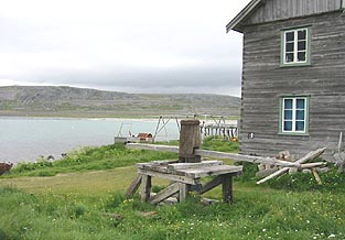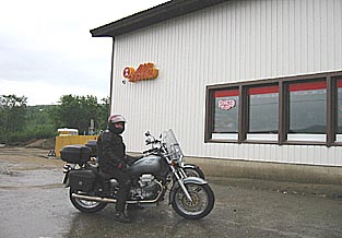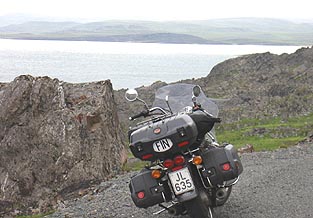 Ajan kaupunkiin ja jatkan pysähtymättä länsipäästä ulos. Jos Olli on pysähtynyt vain Mortensnesissä, meidän pitäisi olla suunnilleen samoihin aikoihin Varangerbottnessa. Ajovire on säilynyt koko päivän aivan eri tasolla kuin eilen. Tie on mukavan mutkainen kurvailtavaksi. Kuuntelen Guzzin käyntiä. Mukavasti se lutkuttelee. Mutta moottorijarrutuksen jälkeen ruisku ikäänkuin vetäisee henkeä, eikä suostu vastaamaan kapulan kiertoon niin sähäkästi kuin oikeastaan pitäisi. En viitsi kuitenkaan moisesta huolestua! Pysähdyn Vestre Jakobselvassa. Paikkakunnalla on myös suomenkielinen nimi: Annijoki. Annijokilaisilla on vankka suomalainen tausta. Suomenkielen taidon sanotaan olevan yhtä yleisen kuin Pykeijassakin. Syy siihen lienee siinä, että suomalaiset ovat aina vierailla seuduilla pyrkineet muodostamaan omia pikku-Suomiaan; pitämään tiukasti yhtä ja muut ainakin kyynäränmitan päässä. Valitettavasti yhtään jututettavaa ei kyläraitilla tule vastaan. Suomalaisten suhteellinen osuus koko Ruijan väestötä oli varsin huomattava: yli 40%. Vesisaari oli peräti 64% suomalaisten asuttama. Kun rannikon saamelaiset lasketaan mukaan norjalaiset olivat pitkäänsä vähemmistönä omassa maassaan. Tilanne ajautui norjalaisten näkökannalta kestämättömäksi. He ryhtyivätkin lakiteitse vastatoimiin: vuonna 1903 julkaistiin asetus, jonka mukaan valtion maata voitiin luovuttaa ainoastaan Norjan kansalaisille. Maansaajien tuli täyttää vielä eräs lisäehto: heidän tuli osata puhua, lukea ja kirjoittaa norjan kieltä ja käyttää sitä jokapäiväisessä elämässään. Samuli Paulaharju kuvailee viime vuosisadan alun Annijokea näin: "Maa antaa vähän, karja antaa enemmän, mutta paras antaja on meri. Se elättää sekä kesällä että talvella. Koko Annijoki onkin suuri kalanpyytökylä, joka ajaa väkensä jo pienestä pitäen merta soutamaan ja siten hankkimaan parhaan elatuksensa. Kylän keskeinen Annijoensuu onkin koko seudun suojainen satama, josta kymmenet isot pyytöveneet lähtevät ja tulevat ja taas siinä joutohetkensä levähtävät ankkurissa. Sataman vierellä ovat kalamiesten isot makasiinit patsaslaitureineen, tynnyreineen ja kalannostovinsseineen. Ja jokiranta sekä hieruanlaita on täynnä kalajällejä tuhansine kuivine turskineen." Tuntuu oudolta, että kaikki talot on rakennettu puusta - tundralla, jolla puita ei juurikaan kasva, eikä ainakaan sen kokoisia, että niistä talovärkeiksi olisi. Vai onko niin, että puutalolla on Norjassa statussymbolin arvo? Vilkaisen Mortensnesissä komsakaivausten parkkipaikalle. Ollin Guzzia ei näy, on ilmeisesti jo lähtenyt kohti Varangerbottnea. Otanpa minäkin sitten vähän lisää kyytiä! Olli löytyy Varangerbottnen Essolta. Tai oikeastaan Guzzi siellä on, mies ilmestyy kaupasta tien toiselta puolelta. Sanoo käyneensä ostamassa tuliaisiksi mätitahnaa ja kutunjuustoa. Menen sanattomaksi. Jo vain pitää olla vaimonsa rakastama mies ja lastensa jumaloima isä, jos noilla tuliaisilla päästetään kotioven sisäpuolelle! Auringonpaiste on jäänyt johonkin Vesisaaren ja Varangerbottnen välille. Synkät pilvet matavat muutamassa kymmenessä metrissä ennustaen sadetta. Tankkaamme, syömme jätskit, ja taas pitäisi kiivetä pyörän selkään. Pitäisiköhän vetäistä fleece puseron ja collegen väliin? Skippagurrassa sataa jo hieman, Polmakissa kaatamalla. Pysähdymme maan pohjoisimman Alkon pihassa Nuorgamissa ottamassa valokuvan. Yritän polttaa tupakan, mutta märät sormet kastelevat paperin, eikä siitä tule oikein mitään. Alkaa hieman palella. Nuorgamin ja Utsjoen välillä sade kiihtyy entisestään. Hämärä laskeutuu. En näe enää kunnolla tietä, jossa siellä täällä on isoja koloja vettä täynnä. Joissakin isommissa lätäköissä tunnen, kuinka etupyörä töksähtää veteen ja nousee vesiliirtoon. Tämä ei nyt ole enää oikein turvallista, mutta pakko on päästä eteenpäin. Saariselälle on vielä pari sataa kilometriä. Vastaantulevien autojen valot häikäisevät taittuessaan likaisesta ja naarmuisesta visiiristä. Kurvaamme Utsjoella paikalliseen juottolaan hörppäämään lämmittävät kahvit. Ripustan puseroni naulakkoon, ja se laskee hetkessä alleen kunnon lammikon. Naapuripöydässä raakkuu ja rallattaa joku paikallinen juopunut naisihminen. Äänellä voisi hyvinkin rapata vaikkapa seinästä vanhat tapetit irti. Muuten meno on melko vaisua. Pihaan ajaa Norjan kilvissä oleva Harrikka, ja sisään vääntäytyy mies ja nainen nahkakamppeissa. Vaikuttavat läpeensä märiltä. Mies kääntyy katsomaan saappaistaan joka askeleella jääviä lätäköitä. En voi olla hymyilemättä. Moikkaavat, mutta istuvat onneksi kuitenkin omaan pöytäänsä. Tuskinpa he ovat sen innokkaampia jakamaan kansainvälistä goodwilliä kuin mekään. Juomme kahvia, polttelemme ja jurnotamme puhumatta mitään. Tiellä ajelee hitaasti etelää kohti jonkinlainen Rajamäen rykmentti: mies ja nainen omilla pyörillään, molemmilla lapsi takasitsillä. Varusteet eivät näytä kovin hyviltä; tavarat, kuskit ja kyytiläiset on peitetty liehuvin muovisuojin. Tuskinpa pysyy vesi noiden kamppeiden ulkopuolella, vaan eivätpä taida olla Saariselälle asti menossakaan. Vähän kuitenkin käy sääliksi. Teemme lähtöä. Vaihdan norskien kanssa ulos mennessämme muutaman sanan. Jåå, jåå. Kovasti on kehno keli! Akkurat! Olli on valmis. Viittaan hänet menemään. Itse soitan vielä vaimolle Pelloon. Siellä on kuulemma mitä parhain sää. Taitaa vain kiusotella kärsivää miesparkaansa! Kosteiden hanskojen vetäminen märkiin käsiin on vaivalloista. Vuori jää peukalossa ryttyyn. Tiedän sen alkavan jonkin ajan päästä painaa. Tarkistan vielä, että olen siirtänyt lompakon ja kameran takalaukkuun sateelta suojaan. Ulkomittari näyttää yhtätoista astetta. Otan sen verran vauhtia, että ilmavirta saa ainakin osan pisaroista visiirissä virtaamaan. Lasken Oll