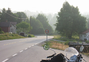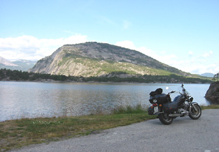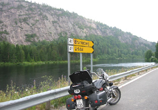 Kiertelen Brandbun kautta kohti pohjoista ja Mjösa-järveä. Gjövikissä tankkaan. Viereen kurvaa joku FJ 1200:lla.
