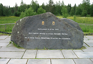Vähän ennen Elverumia äkkään tien reunassa muistopatsaan. Pyörä ympäri ja tutkimaan, mitä täällä on touhuttu.