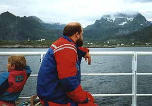 15.7.1991 Palaamme aamulla kappaleen matkaan takaisin päin Remen kylään, josta lautan Bodöhön on määrä lähteä. Ja lähteehän se ajallaan. Juttelemme kannella suomalaispariskunnan kanssa. Heidän mielestään Norjan tiet ovat mutkaisia ja motoristienkin ajokäyttäytymisessä on toivomisen varaa. Eli eipä varsinaisesti mitään uutta. Lofoottien kärjen ohitettuamme Olli on selvästi havaitsevinaan aallokon nousevan, vieläpä pahasti laivaa keikuttavan ristiaallokon. Taas on viisaampi, etten sano mitään. Tosin aivan selvästi olen huomaavinani Ollissa Kharonin piirteitä. Styks-virta oli yksi kreikkalaisen mytologian Manalan virroista, jonka yli Kharon kuljetti kuolleiden sieluja. Maksuksi pantiin vainajan suuhun obolin kolikko. Obolin sijasta pistän suuhuni Marlboron. Mutta kannelta en kyllä lähde alas; horisontin kun näen, niin voin hengissä selvitä. Ja eihän tätä nyt kestä kuin nelisen tuntia. Poikkeamme kuitenkin vielä Varöyan pikkusaaren kylässä maissa. Kylän nimen täytyy olla sama kuin saarenkin. Se kun on niin pieni läntti, että kartalle ei kyllä siihen kohtaan kahta nimeä mahdu. Varöyan saarta lähestyttäessä Olli saa puijatuksi minut kahvioon aamupalalle. Saan juuri ja juuri kahvit ja sämpylän alas kun seinät alkavat keikkua. Tuntuu, että ne yksinkertaisesti kaatuvat päälle. Äkkiä ylös kannelle! Matka jatkuu, ja Olli lupaa jäädä kaverikseni kannelle. Minä lupaan itselleni, etten oksenna. Ollikin kyllästyy sitä odottelemaan ja näyttää torkahtavan kansituoliin. Herätän hänet sanomalla jotakin. Toisella yrityksellä herätys tapahtuu potkaisemalla vahingossa kansituolia. Asia nyt vain yksinkertaisesti on niin, että kun minä olen tulemaisillani pahoivoivaksi, kaverikaan ei kyllä silloin nuku. Ja noustaan sitä ylös vielä joskus kabiinillakin, varma on näin! Bodöstä sen verran, että siellä on ainakin Esson ja Shellin bensa-asemat. Eipä sitten juuri muuta. Poikkeamme päätieltä ja ajamme Saltstraumenin salmen yli. Siinä on kyltin mukaan maailman suurin vuoroveden vaihtelu. Uskon asiaksi se jää, milläs moisen mittaa. Muutaman kortin toki kirjoitamme. Olli riisuu villapuseronsa. Varma konsti saada sadetta niskaan! Kurvaamme tielle numero kahdeksansataa ja jotakin. Olli pääsee soratielle, minä joudun sille. Alkaa ripistellä, totta kai. Olli ajaa rinnalle ja huutaa odottelevansa E 6:lla. Mieli karrella katson hänen katoavan mutkan taakse. Ja seuraavalla suoralla ei ukkoa enää näy. Kaikki sateen jumalat kaatavat tuotteensa niskaani. Ajan omaa tahtiani ja ajattelen todella rumia ajatuksia. Märkä savilieru on pikkuisen liukas. Viisi-kuusikymmentä kilometriä myöhemmin tapaan Ollin tienvarren kahvilasta. On näemmä kiskonut villapuseron takaisin päälleen. Vaan sainpahan kiinni ajamalla!! Poikkeamme napapiirillä. Täälläkin on sodan aikana teloitettu jugoslaaveja. Patsaskin on. Suuren ja Mahtavan pojatkin ovat saaneet omansa. Sade taukoaa, ja Olli puhuu jotakin villapuseron riisumisesta. Kurvailemme kohti Mo-i-Ranaa; siis sateessa, tietysti. Randalselvan kosket ovat todella kauniita. Vuorista nyt ei enää niin väliä olekaan. Mo-i-Ranan katukeittiön tyttö ei oikein suostu ymmärtämään sen paremmin englantiani kuin ruotsianikaan. Missä vika? No, ymmärrys vähän paranee kun käännän äänen volyyminappia suuremmalle. Pyrimme vaatteet likomärkinä paikalliseen hotelliin, mutta siellä meille kerrotaan paikan olevan täynnä. Kummallista! Suurin osa asiakkaista on varmasti tullut jalkaisin. Parkkipaikka nimittäin on lähes tyhjä! Ajamme laskettelukeskuksen matkailumajaan. Siellä ei olla turhan nuukia, ja mekin kelpaamme asiakkaiksi. Kuivaamme kamppeita ja juttelemme kaarreajotekniikasta. Painan vinkit mieleeni. |