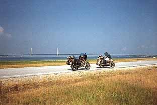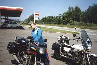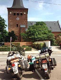 10.6.1989 Yöllä on satanut, mutta aamu onkin jo pilvetön ja lämmin. Hienoa olla suomalainen motoristi Klinteholmin krossa lapioimassa naamariinsa pekonia, munia, nakkeja, parin eri sortin kinkkua ja meheviä tomaatteja; todella maittava kasvispohjainen aamiainen suomalaisen miehen makuun. Ja sitten se on good-bye Mön. Varo Saksa, täältä tullaan. Falsterille ajettaessa huomio kiinnittyy, taas kerran, komeisiin tanskalaisiin siltoihin. Täällä on varmasti jokin meidän RKP:tä vastaava puolue, jonka edistyksellisimpien kansanedustajien on pakko saada jälkipolvia varten oma monumentti - silta. Sillä nyt ei ole kovin paljon väliä, onko sillan rakentamisella ja sen käyttöasteella mitään vastaavuutta. Onhan se komea, ja kun yhteiskunta sen kustantaa, niin sehän ei ole keneltäkään poissa. Lollandin puolelta Guzzista alkaa kuulua outo helinä. Ne tutut kalinat ja kolinat toki kuuluvat asiaan, mutta tämä nyt on uutta. Asiaa tutkiessani huomaan, että toinen moottorin kiinnityspultti on tippunut ties minne. Toinenkin vaikuttaa olevan hieman löysällä, koska kone heiluu jotensakin holtittomasti. Saksköpingin kaupunkiin ei ole kuin muutama kilometri, joten sinnepä vain katsomaan, löytyisikö tien varrelle varissutta pulttia vastaavaa samanlaista. Kaupungin torin reunalla on tuumaustupakan paikka. Saman tien paikalle kurvaa nuori hondamies ja kysyy, onko jokin hätänä. Kerron pojalle hädän laadun, ja hän pyytää seuraamaan perässään. Paikallisesta polkupyöräkorjaamosta sopiva pultti löytyykin helposti. Korjaamon omistaja ei suostu ottamaan maksua moisesta. Asialle ei todellakaan tunnu mahtavan mitään, joten kiinni vain ja kiitoksia paljon - mange tack. Hondakaveri kutsuu meidät vielä käymään kerhotalollaan, ja mikäpä siinä - aikaa kyllä on. Kerhotalolla on varastossa tarjottavaa enemmän kuin pienen kaupungin viinakaupassa. Nautimme jotain pientä. Saman tien muitakin kerhon jäseniä alkaa valua paikalle; pari kaveria kajakkikaksikolla - tonnisatasella Suzukilla, johon on koplattu sivuvaunu. Juttelemme niitä näitä. Kaverit kertovat yleensä lomailevansa Italiassa; Suomessa heistä ei ole käynyt kukaan. Lähtiessämme kerhon puheenjohtaja lykkää vielä mukaani muutaman kaljapurkin. Pitää Saksaa niin pitkästyttävänä maana, ettei sitä aivan selvin päin kestä. Ajamme Rödbyhavnissa lautalle ja olemme tuota pikaa Puttgardenissa. Koukkaamme lenkin Oldenburgissa ja jatkamme matkaa Lyypekkiin. Sieltä kaupungin läpi vanhalle suolatielle pitkin Itä-Saksan rajaa, jonka piikkilangat pilkahtavat näkyviin sieltä täältä. Noinkohan on, että tuo raja olla jököttää siinä iät ja ajat? Joitakin merkkejä on kyllä näkyvissä, että aivan niinkään ei olisi; tuonne superryssiinhän suomalaisetkin pääsevät jo ilman viisumia. Eli jonkinlaista avautumista siellä on, vaikkapa sitten pakonkin edessä. Alempaa amatööritasoa edustavana sotahistorian harrastajana luin viime talvena Wolf Halstin muistelmista toista maailmansotaa, sen syitä ja seurauksia, käsittelevän osan. Jälkiviisaus on toki sellainen viisauden laji, että siihen pystyy kuka tahansa. Mutta tämän päivän näkökulmasta on kyllä helppo olla kirjoittajan kanssa yhtä mieltä presidentti Rooseveltin lyhytnäköisyydestä hänen Eurooppaa kohtaan harjoittamansa politiikan suhteen. Jos hän, sen sijaan että ryhtyi tukemaan itänaapurimme sotaponnistuksia todella laajassa mittakaavassa, olisi antanut kahden sotivan diktatuurin - Saksan ja Neuvostoliiton - kaikessa rauhassa kuluttaa toisiaan, Neuvostoliitto ei olisi koskaan saanut sellaista vaikutusvaltaa Euroopan asioihin kuin mitä sillä nyt on. Keski-Eurooppa olisi varmasti hyvinkin toisen näköinen ilman jakoa Itä- ja Länsi-Eurooppaan. Eikä Saksassa olosuhteiden pakosta pitkään pidetyt jenkkiarmeijatkaan olisi olleet kuluttamassa amerikkalaisen veronmaksajan kukkaroa. No, siinä se raja nyt joka tapauksessa on. Saa sitten nähdä kuinka kauan vielä. Ajelemme Ratzeburgin ja Möllnin ohi kohti etelää. Päätämme yöpyä Buchenissa. Gasthausin vieressä oleva kauppa ei Sonni-nimestään huolimatta olekaan eläin- vaan vaatekauppa. Hymähdyksen arvoinen asia sekin. Suihkun ja vaatteiden vaihdon jälkeen kömmimme syömään alakerran ravintolaan. Tunnumme herättävän paikallisissa baarikärpäsissä kiusallista huomiota. Kaikki seuraavat jutteluamme, aivan kuin epäilisivät meidän puhuvan heistä pahaa. Porukasta erkanee kaksi kaveria, jotka tulevat luoksemme. Jostakin kumman syystä he haluavat tehdä vaikutuksen meihin esittelemällä, mistä Saksan heimosta he ovat lähtöisin. Riisitautisemman näköinen tökkii peukalolla rintaansa ja osoittelee samalla kaveriaan: - "Ich bin ein Frank, und er