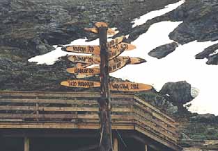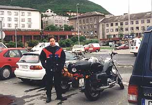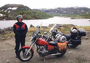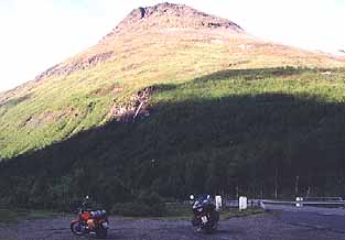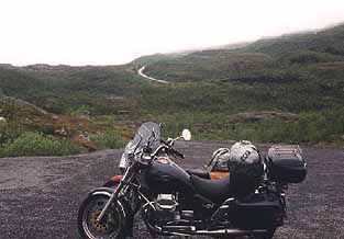 25.6.1999 Aamu on vielä sateentuhnuinen. Mutta mennäänpä tuon Kölin yli, toisella puolella voi olla vaikka hellettä. Ei kuitenkaan pidetä kiirettä. Käydään ihan kaikessa rauhassa aamiaisella ja katsellaan Björklideniä vielä vähän korkeammalta, hotellin pihalta. Aika kostealta ja kolealta ilma vielä tuntuu, kun lähdemme liikkeelle. Sumu on kuitenkin hälvennyt siinä määrin, että näköala Torniojärvelle on selvä. Björkliden on pian katsottu. Vamos, eteenpäin! Rajalla sataa tihuuttaa. Ketään ei näy liikkuvan meidän lisäksemme. Tullissakaan ei tunnu olevaan minkäänlaista elämää. Kysyn Mikolta, kiinnostaako häntä heittää vettä vedenjakajalle niin, että puolet valuu Pohjanlahteen, puolet suoraan Atlantiin. Ei kuulemma kiinnosta: koulussa saatu kirjatieto siitä, miten vedenjakaja toimii, kuulemma riittää. Onkohan tuo Mikko vähän liikaa herrasmies! Kurvailemme Kölin Atlantin puoleista rinnettä alaspäin. Tutkimme samat paikat kuin Ollinkin kanssa vuonna -91. Mikkokin äityy ällistelemään norskien fjellhyttejä, mutta ei juurikaan syty sodanaikaisille muistomerkeille. Tässä taitaa olla kyseessä jonkinlainen sukupolvien välinen kuilu. Minua ne jaksavat aina kiinnostaa. Vähitellen kierrymme Narvikiin. Kävelemme pikku lenkin kaupungilla. Huomioni kiinnittyy seikkaan, joka mielestäni on uusi norskien keskuudessa. Kovin monet näyttävät omineen käyttöönsä ruotsalaisten perkeleellisimmän keksinnön - puukengät. Minulla on niistä myös omakohtaisia kokemuksia. Ollessani 70-luvun alussa töissä Prippsin kaljatehtaalla Tukholmassa minäkin niitä jouduin pitämään. Mahdottoman liukkaina ne olivat jopa vaaralliset tehtaan märillä lattioilla. Ne olivat myös trukkimiesten virkakengät. Ei ihme, että välistä kokonaisia pullolavoja kaatui ja rikkui pitkin varaston lattioita. Toinen hankaluus puukenkien kanssa oli, että ne painoivat jalkoja pahasti. Niiden taipumattomuus kiusasi minua niin pahoin, että leikkasin päällykseen pieniä viiltoja, jotta jalka pääsi jollakin tapaa liikkumaan. Niissä oli sellainen näennäinen hyvä puoli, että ne saivat minut näyttämään viisi senttiä kookkaammalta. Se etu tosin hukkui siihen, että kaikki ruotsalaisetkin olivat kenkien verran mittaansa pitempiä. Ainoa todellinen hyöty pituuden suhteen oli se, että kun tulin takaisin Suomeen minulla oli kymmensenttiset känsät jalkapohjissa. Totuin puukenkiin kuitenkin siinä määrin, että ajelin AEG:n kuorma-autoa ne jaloissani ympäri Tukholmaa, eikä kolareita sattunut. Mutta kaiken kaikkiaan, pirulliselta keksinnöltä ne tuntuivat. Sotamuseo on sen verran must, että sinne menemisen suhteen ei Mikon mielipidettä kysellä. Museota on laajennettu viime käyntini jälkeen. Tutkin tarkoin Narvikin taistelun kulun kuvien ja tekstitaulujen avulla. Huhti- ja toukokuussa vuonna 1940 Narvik joutui raivokkaiden taisteluiden tapahtumapaikaksi. Sekä liittoutuneet että keskusvallat olivat kiinnostuneita pääsemään käsiksi Ruotsista Narvikin satamaan kuljetettavaan rautamalmiin, jota molemmat kipeästi tarvitsivat aseteollisuutensa raaka-aineeksi. Ruotsilla tuskin olisi ollut omantunnon tuskia käydä kauppaa kumman tahansa osapuolen kanssa. Kymmenen hävittäjäluokan laivan voimin, joissa jokaisessa oli pari sataa itävaltalaista vuoristojääkäriä ja rannikkotykistön sotilasta, Hitlerin joukot valtasivat Narvikin 9. huhtikuuta. Hyökkäyksen yhteydessä he upottivat Norjan rannikkopuolustuksen aluksista Eidsvoldin ja Norgen. Brittijoukot tekivät Narvikin ensimmäiseksi taisteluksi kutsutun vastahyökkäyksen 10. huhtikuuta. Molemmat osapuolet menettivät siinä rytäkässä kolme sota-alusta. Britit joutuivat kuitenkin vetäytymään. Narvikin toinen taistelu alkoi 13. huhtikuuta brittijoukkojen uusiessa hyökkäyksensä. Tällä kertaa heillä olikin menestystä. He onnistuivat tuhoamaan kokonaan taisteluun osallistuneen, ammus- ja polttoainepulasta kärsineen saksalaislaivaston. Yhdessä puolalaisjoukkojen kanssa britit piirittivät Narvikia seuraavat kuusi viikkoa. Liittoutuneiden laivasto piti hallussaan vuonojen vesialueita ja samalla tulitti saksalaisten rannalla olevia taisteluasemia. Saksalaisten ilmavoimat onnistuivat kuitenkin pommittamaan liittoutuneiden alukset joko pohjaan tai pakosalle. Meritaistelut muuttuivat maataisteluiksi ja levisivät myös Narvikin ympäristöön. Liittoutuneet saivat Narvikin haltuunsa 28. toukokuuta. Saksan hyökkäys Ranskaan pakotti liittoutuneet vetämään joukkonsa näihin uusiin taisteluihin. Narvik joutui uudelleen saksalaisten haltuun ja pysyi heidän käsissään sodan loppuun asti. Narvikin taisteluiden loppusaldo oli täysin tuhottu kaupunki ja siviiliväestön suunnattomat kärsimykset. Narvikin edustan vuonoon upposi 55 myöhemmin paikallistettua pinta-alusta, sukellusvenettä ja lentokonetta. Mikko alkaa olla melko kärsivän näköinen, joten taitaa olla aika lähteä ulos. Museon edustalla on koko joukko kolmipyöräisiä Messerschmidt-autoja matkalla Nordkappiin kokoontumisajoon. Katselemme hetken heidän touhujaan. Ajamme kaupungin viereisen tunturin huipulle menevälle kabiinihissiasemalle. Parkkipaikalla Mikko ei osoita jälkeäkään omasta hillitystä itsestään. Saan harvinaisen äkäisen muistutuksen siitä, että Guzzin vilkku tahtoo jäädä päälle. En ole vieläkään oppinut pois Bemarin automaattisesti palautuvia vilkkuja. Mikko ei selvästikään tykkää, että vähättelen koko asiaa. Mikko ei ole kabiinin heiluttelusta millänsäkään, joten lopetan moisen. Ylhäällä on aika kalsean ja kostean tuntuista. Vetäydymme suosiolla kahvilaan syömään sämpylät ja juomaan kahvit. Sen jälkeen otamme muutamia valokuvia ja nautimme maisemista muuten vain. Kello osoittaa jo alkuiltapäivää, joten on syytä jatkaa matkaa. Ajelemme samaa tietä takaisin Leirvikiin ja jatkamme sieltä kohti pohjoista. Pilvet väistyvät syrjään ja antavat tilaa auringolle. Mikon h