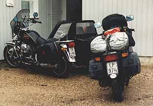17.7.1995 Ei kyllä paljon naurata. Tuulen mukana vihmoo vettä, joka tuntuu jäätävän kylmältä. Sodankylässä vilkaisen liikkeen seinällä olevaa lämpömittaria - seitsemän astetta. Ja on heinäkuun puoliväli. Pysähdyn lämmittelemään aina muutaman kymmenen kilometrin välein. Viimeinen lämmittelypysähdys ennen Saariselkää Tankavaarassa. Sen verran hytisyttää, etten tahdo saada tupakkaan tulta. Mutta Ollilla pääseekin valmiiksi lämmitettyyn saunaan. Kun yöksi saa ajokamppeet lauteille kuivumaan ja hieman lämmittävää viskiä, niin elämä alkaa pikku hiljaa taas hymyillä. |
