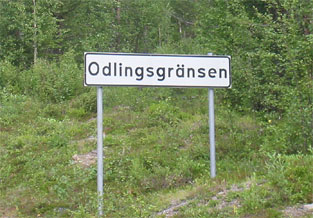 valokuva. "Odlingsgräns" seisoo kyltissä tolppakirjaimin. Näin fiksusti ruotsalaisessa kansankodissa pidetään