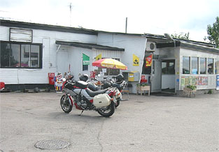 Abiskossa tankkaamme ja puraisemme pikku välipalan. Juhan huuli on palautunut entiselleen.