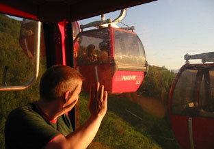 Janne käy kertomassa, että viimeinen hissi ylös lähteekin jo klo 21.00. Se tarkoittaa,
