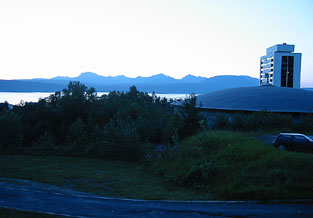 Kurvaamme Narvikin keskustaan. Yritän muistella, missä keskustan hotelli sijaitsee.