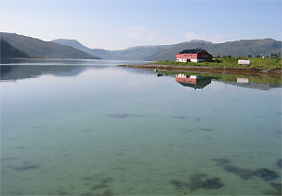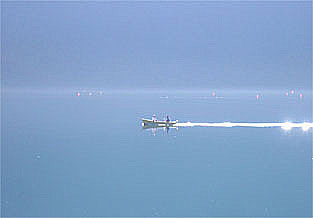 halkoo peilityyntä vuonon pintaa. Tuskin ovat kalaan menossa näin kuumalla ilmalla; uintireissulle pikemminkin.