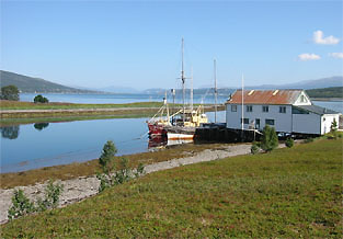 Rantaudumme Brensholmenin laiturille. Saari edustaa tyypillistä norjalaista nimistököyhyyttä: tämäkin on