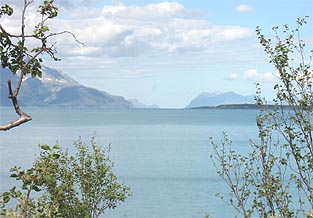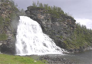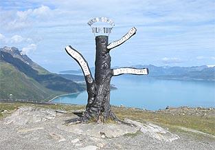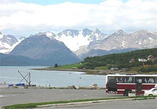 Yöllisestä sateesta ei näy enää merkkiäkään. Aamun raikkaudessa on mukava lötkötellä menemään ja antaa maisemien liukua hiljakseen ohi. Läänikin vaihtuu Finnmark Fylkestä Troms Fylkeksi.