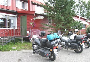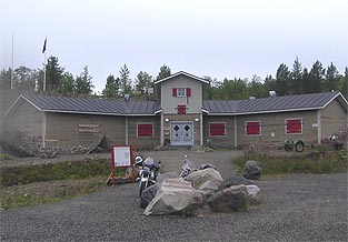 Karesuvannossa juodaan reissun viimeiset yhteiset kahvit. Sovimme, että Muoniosta ajamme kukin toista tietä omalle maalleen. Jaska ja Olli lähtevät Muoniosta kohti Kittilää, minä jatkan Väylänvartta suoraan etelään. Vettä tulee koko ajan kuin aisaa. Jäiköhän siihen Jaskan konjakkipulloon vielä juotavaa?