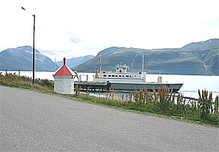 Pihalla seurailemme Lyngseidetistä tulevan lautan rantautumista. Ja taas maisemaa putkeen. Ajan kirkkaasta auringonpaisteesta tunneliin, ja tuntuu siltä kuin joku napsauttaisi valot pois päältä. Aurinkolasit ovat taas unohtuneet silmille. On pakko pysäyttää ja repiä rillit pois. Toinen sanka vääntyy.