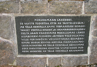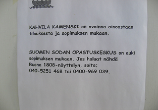 26.7.2006 Huoneen hintaan saa aamupalaksi reissumiesleivän, purkin jogurttia, kupin kahvia ja lasin vettä. Kaurapuuroakin saisi, mutta sitä minä en kyllä alennu syömään! Olen tuota pikaa Parkanossa. Tankkaan pyörän ja suunnistan kohti Karviaa. Mitä kaikkea kivaa on Karviassa? No, siellähän on se varavankila ja sitten on... Onhan siellä - tuota... Pakkohan siellä on olla, vaikkapa... Olisi kai mukava, jos siellä olisi... No, siellä on Neste, joka on kiinni. Ja Shell, joka on auki, ja josta saa kupin kahvia, ja jossa kaikki kaksi muuta asiakasta tuijottavat minua muukalaisena heidän reviirillään. Eivät näytä äijät muistavan minua, vaikka ole täällä ollut aiemminkin: Ajelin syyskesällä -98 Piikkiöstä Kankaanpään kautta Ouluun. Olin juuri käynyt tekemässä kaupat nykyisestä EeVeestäni. Alla oli vielä vaihdokki BMW K-100, siinä vaiheessa jo oikeastaan Moto Italian omaisuutta. Niinisalon ja Karvian välillä, jossakin likempänä Karviaa, minun ja paikallisen koppelon lentoradat sattuivat yksiin. Lintu tulla mötkähti pyörän kylkeen ja rikkoi katteen oikean puoleisen sivukappaleen. Osui onneton vielä sääreeni tosi kipeästi. Henkensä otus toki siinä rytäkässä heitti, mutta niin paljon minua pisteli vihaksi, että piti vielä kaydä vainajaa potkaisemassa. Sinne retkahti ojan pohjalle. Karvian Shelliltä ostin rullan ilmastointiteippiä, jolla harsin katteen palaset yhteen loppumatkan ajaksi. Oulussa pirstat sitten muovihitsattiin yhteen, ja siitä tuli ihan hyvä, uudessa maalissa ja lakassa oikeastaan alkuperäistä parempi. Muistelematta koppeloriepua enää sen suuremmalla katkeruudella alan kiertyillä kohti Kauhajokea. Nummijärven taistelut pitää matkalla selvittää. Valtion sarka muuttuu soratieksi. Ladon seinällä hymyilee joukko onnellisten lehmien kuvia. Nummijärven muistopatsaalle osuu pakostakin. Se on aivan kylän keskustassa, tien reunassa. Kylän tanssipaviljonki näyttää olevan samassa paikassa kuin jo neljäkymmentä vuotta sittenkin. Vieläköhän Markus Allan ja Umberto Marcato mahtavat täällä keikkaa heittää! Nummijärven ja Kauhajoen välinen maisema on revitty paikoin todella rujoon kuntoon. Pohjankankaasta on muodostunut soranottopaikkojen jono, jota ei millään tavoin ole edes yritetty maisemoida. Niin on ikävän näköistä, että luulisi sorakeisarienkin itkevän - matkalla pankkiin. Pysähdyn tutkimaan Sampo Ahton opusta Kauhajoen muiden taistelupaikkojen löytämiseksi. Kirjaan on merkitty niiden sijainti kilometrin tarkkuudella keskustasta. Mutta ei siellä kyllä mitään ole - ei patsaita, eikä edes kylttejä, ettei täällä mitään ole. Ajan pettyneenä takaisin keskustaan. Kaupungiksi näyttää tämäkin kylä itseään tituleeraavan. Päätän pistäytyä Eduskunnan Talvisotamuseossa. Hetken etsiskelyn jälkeen sen löydänkin. Sen tarkka sijaintipaikka on Sanssin koululla. Mutta siellä on menossa remontti. Pihalla seisoskelee nuori mies maalarinhaalareissa. Kysyn, onko museo mahdollisesti remontin takia suljettu. "Tiätääkseni o", eikä sitten muuta. Lyhyttä on ja ytimekästä tämä eteläpohjanmaa. Jokohan tämä olisi nähty! Pistäydyn vielä kuitenkin veteraanien perinnetalolla ja sitten äkkiä Aronkylän Essolle kahville. Siinäpä se, Kauhajoki! Parhaimman kuvan se taitaa edelleenkin antaa itsestään ohitustieltä n:o 44 katseltuna! Aronkylästä käännyn kohti Jalasjärveä, josta Peräseinäjoen kautta Alavudelle. Tie kulkee asumattoman alueen halki - Pohjanmetsän, jota pitkin nuijamiehetkin etelään ryhdikkäästi marssivat ja pitkin ja poikin hajanaisina laumoina takaisin raahustivat. Jalasjärvellä ei nyt ole syytä pysähtyä, Peräseinäjoella kylläkin kuvan ottamisen ajaksi. Tänne taitaa johtaa pari vuosikymmentä sitten Norjan veroviranomaisten perintätarkoituksissa etsimä Backwall River Group Ltd. Joitain pieniä juttuja reppufirmalla taisi Norjaan jäädä hoitamatta. Mutta yrityksen nimi kyllä osoittaa nikkariltaan suurta keksiliäisyyttä. Aivan samoin kuin Notareal-yhtiö, jonka senkin kyllä pitäisi ainakin sijoittajien ja lainoittajien hälytyskelloja soitella. Liikenneympyrä Peräseinäjoella on niin suuri, että paikalliset liikennemäärät eivät sellaista tarvitsisi - jos tarvitsisivat liikenneympyrää ylipäätään. Mutta jos kerran pakko on trossata, niin mikäpä ettei sitten noin. Mutta pelkkää hyvää vain Peräseinäjoesta, juoksija Ville Ritolan kotikylästä. Alavudella osun Muistojen kappeliin oikeastaan vahingossa. Pistän Guzzin parkkiin. Lämpöä alkaa olla liiankin kanssa. Puseron voi aina heittää pois, mutta housut, niin kuumat kuin ne ovatkin, lienee syytä pitää jalassa. Vaimo soittaa maalausremonttiin liittyvästä ongelmasta. Annan napakat toimintaohjeet. Istun hetkeksi penkille tupakoimaan. Soitan Kokkolaan Pekka P:lle ja kerron huoleni pahasti tukkeentuneista ilma- ja polttoainesuodattimista. Pekka kehoittaa poikkeamaan pajalla seuraavana päivänä. Alavuden taistelun muistomerkit ovat onneksi samassa kiekerössä. Kuvaan kivet ja tavailen tekstit. Synkältä ja paatokselliselta vaikuttaa alavutelainen isänmaallisuus. Parkkipaikalla ohitseni ajelee mies polkupyörällä. Palaa sitten takaisin ja sanoo, että minun kannattaisi käydä Pentti Valkealahden kotimuseossa. Katselen uudelleen loittonevaa selkää, enkä äimistykseltäni ehdi kysyä miksi, minunko nimenomaan, tai kuka kyseinen herrahenkilö mahtaa olla. Päätän pistäytyä Keskisen kyläkaupalla Tuurissa, jossa kaikilla varmasti on onnea matkassa. Jos minullakin, niin varmaan bongaan siellä jonkun iltapäivälehtien palstoilla päivä toisensa jälkeen esitellyistä kauppiaan salarakkaista. Johan se tekisi minustakin jotakin. Kauppaa ei tarvitse etsiä, liikennevirta vetää sinne vastustamattomalla imulla. Tulen suunnattomalle parkkipaikalle, jossa käy kuumeinen huiske. Ihmiset kantavat isoja kolleja autoihinsa ja palaavat sitten kauppaan toiselle, tai