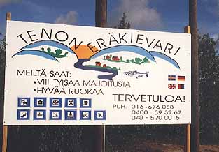 Finnmarksviddalla sataa jo reilummin, tuulee ja on todella kalseaa. En kuitenkaan viitsi alkaa kaivella laukuista lisää päälle pantavaa. Kestetään tämä nyt miehen lailla; Karasjoelle ei ole kuitenkaan kuin satakunta kilometriä. Pysähtelen siellä täällä. Otan muutaman kuvankin. Tie laskeutuu ylängöltä Karasjoen varteen, Jerkyllin kylään. Tutkailen parkkipaikalla opastaulusta kalastuksesta annettuja ohjeita. Ohjeissa kerrotaan seikkaperäisesti, mitä kaikkea ei saa tehdä. Tiivistetysti sanottuna: kaikki muu kuin paljaalla koukulla onkiminen on kiellettyä, ja silläkin on kielletty saamasta minkäänlaista saalista. Ohjetaulu kertoo myös tarkasti, miten lupamaksut suoritetaan. Lopuksi vierailija toivotetaan tervetulleeksi kalastamaan Norjan lohijokiin. Yht'äkkiä viereeni ilmestyy kuin maasta polkaistuina tusinan verran vaaleatukkaisia, suunnilleen saman ikäisiä pikku poikia. Kyselen miestenaluilta, kenen tyttöjä he ovat. Kaikki pyrkivät toistensa selän taakse piiloon. Rohkein vakuuttaa hieman närkästyneenä heidän kaikkien olevan poikia. Olen ymmärtävinäni, että he ovat osin veljeksiä, osin serkuksia keskenään. Onko täällä televisiossa niin huonot ohjelmat, että ihmisten iltapuhteiden harrastukset pyörivät noin kovin yhden ja saman asian ympärillä? En sitä kuitenkaan pojilta kysy. Nousen Guzzille ja annan rohkeimman painaa starttinappulaa. Guzzin käyntiin jyrähtämisellä on poikiin sähköistävä vaikutus. Kaikki alkavat tehdä kädellään kaasukahvan kiertämistä kuvaavia eleitä. Samoin kaikki pärisyttävät huuliaan niin, että kuulen äänen kypärän ja korvatulppien läpi. Kurvaan tielle, ja pojat juoksevat perässä. Ajan hiljaa ykkösellä ja juoksutan poikia muutaman sata metriä kunnes näyttää, että kaikki alkavat läkähtyä. Heilautan kättäni ja kaasutan tieheni. Pojat jäävät vilkuttamaan tielle. Kello on jo vaikka mitä kun tulen Karasjoelle. Jatkan matkaa saman tien kohti rajaa ja tuota pikaa olen taas EU:n hoivissa. Käännyn Karigasniemellä Tenon rantaa seurailevaa tietä pitkin kohti Utsjokea. Muutaman kilometrin jälkeen huomaan tien reunassa Tenon Eräkievarin kyltin. Ajelen sinne ja tiedustelen asentopaikka ynnä mahdollisuutta syömiseen. Koko henkilökuntaa edustava nuori kaveri lupaa molempien järjestyvän. Kysyy vielä, käykö poronkäristys illalliseksi. Varmasti käy. Kannan kamppeeni huoneeseen ja hörppään loput Makinalustat kylmänvihojen karkoittamiseksi. Suihkun jälkeen olen valmis syömään. Herra henkilökunta kertoo omistaneensa itsekin motskarin muutama vuosi sitten. Kontioralleissakin mainitsee käyneensä. Muutamalla näppärästi asetetulla kysymyksellä voin huomata hänen puhuvan aivan totta. Juttelemme jonkin aikaa niitä näitä. Kaveri kertoo olevansa kotoisin Tampereelta, käyneensä eräopaskurssit ja jotenkin vain kiertyneensä tänne. Hyvä täällä kuulemma on olla, minkäänlaista kaipuuta takaisin Manseen ei ole. No, eipä ole kyllä minullakaan. Minä vetäydyn yöpuulle, hän sanoo lähtevänsä yöksi kalaan joelle. |
